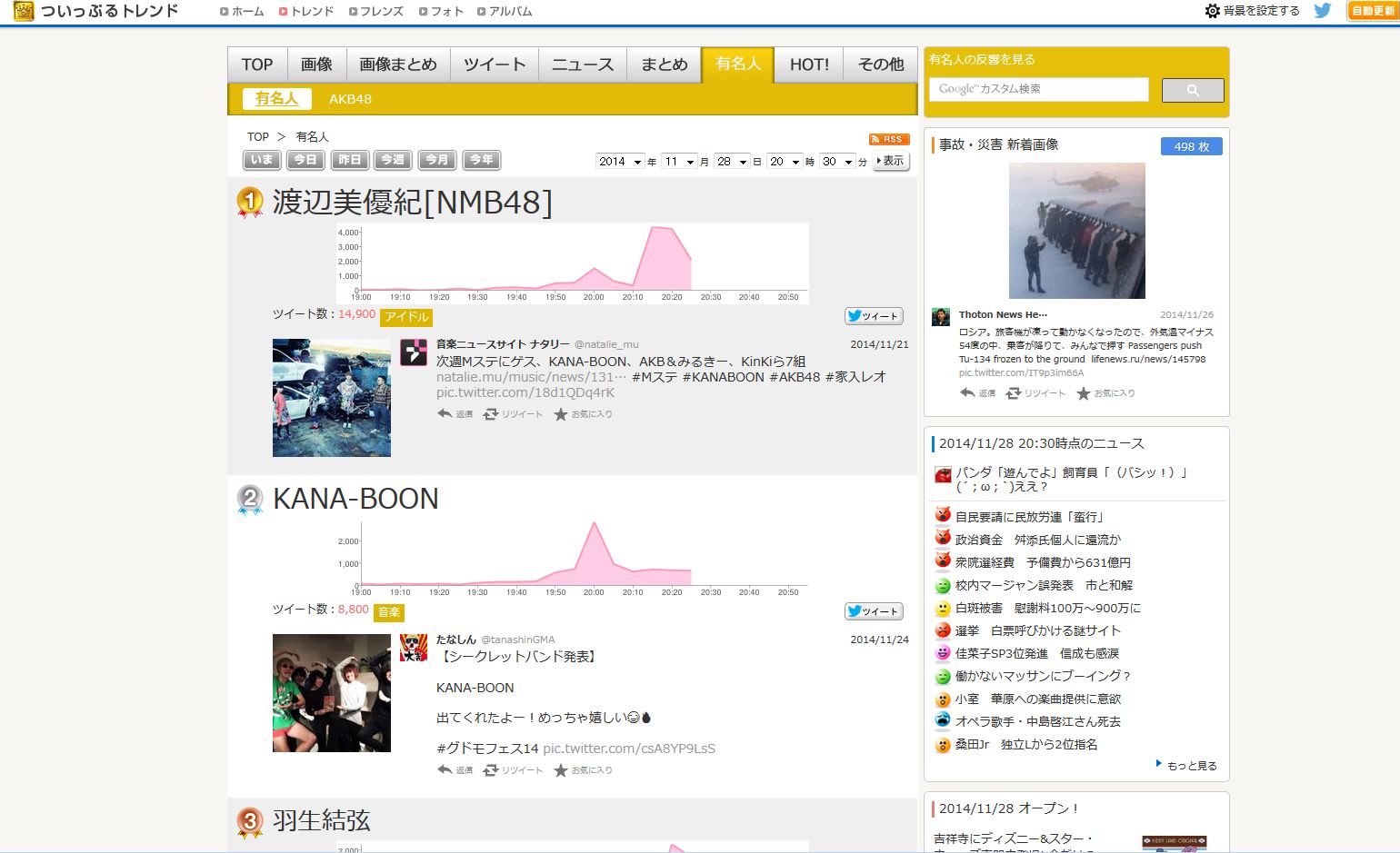 ついっぷるトレンドは有名人で1位