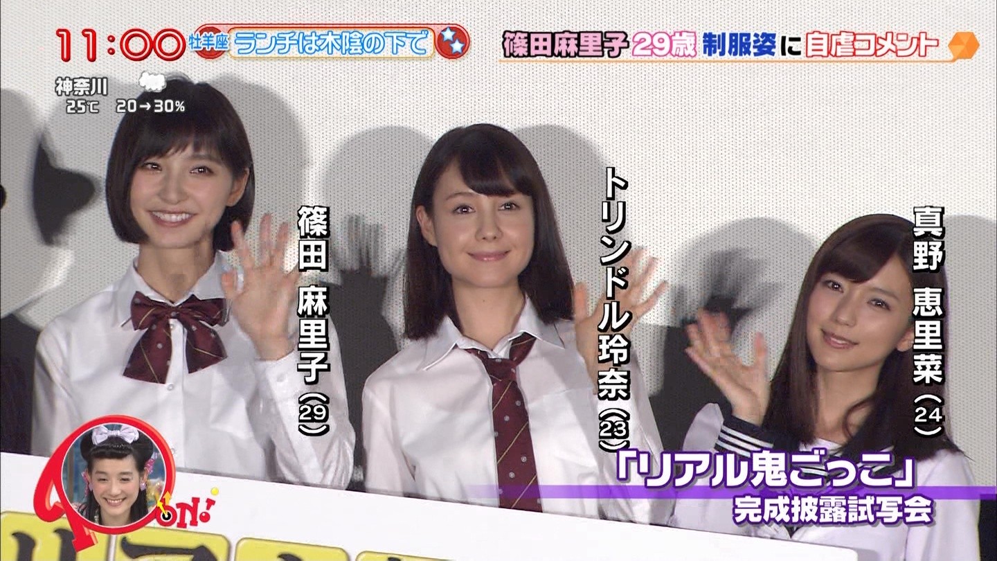 「累計発行部数200万部超えを記録した山田悠介氏の同名小説が原作で、篠田はトリンドル玲奈、真野恵里菜とトリ