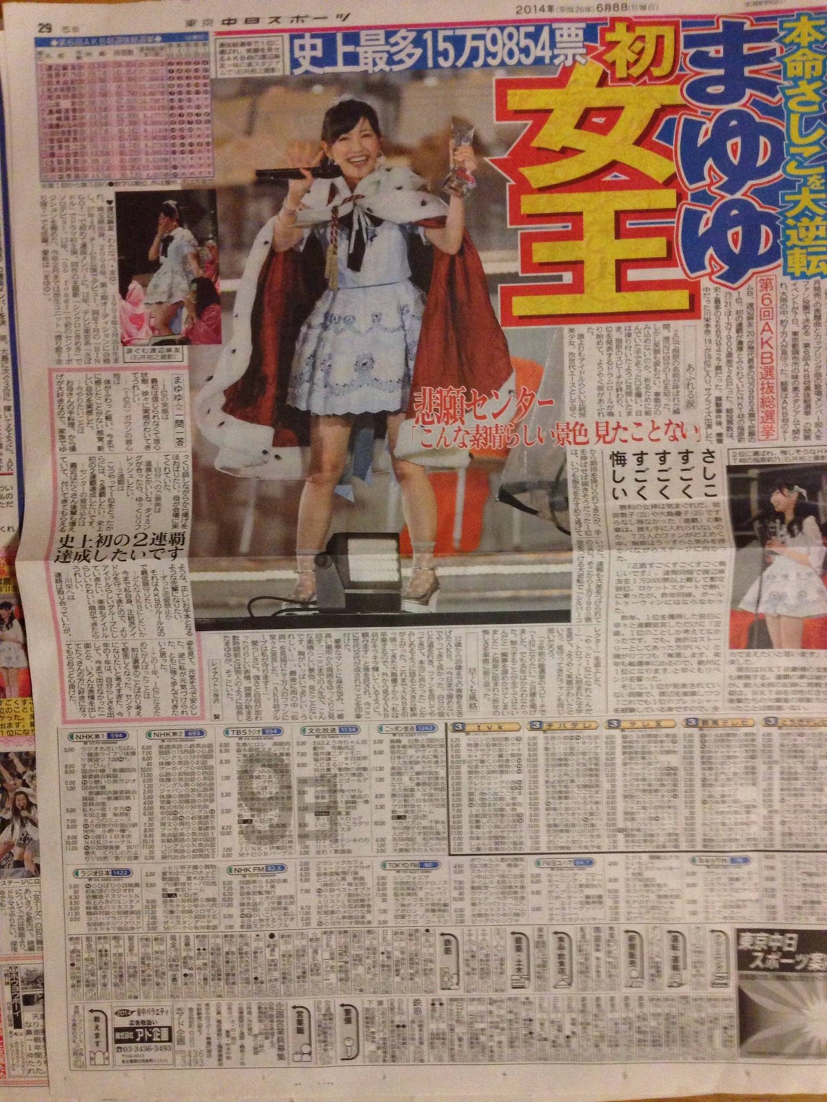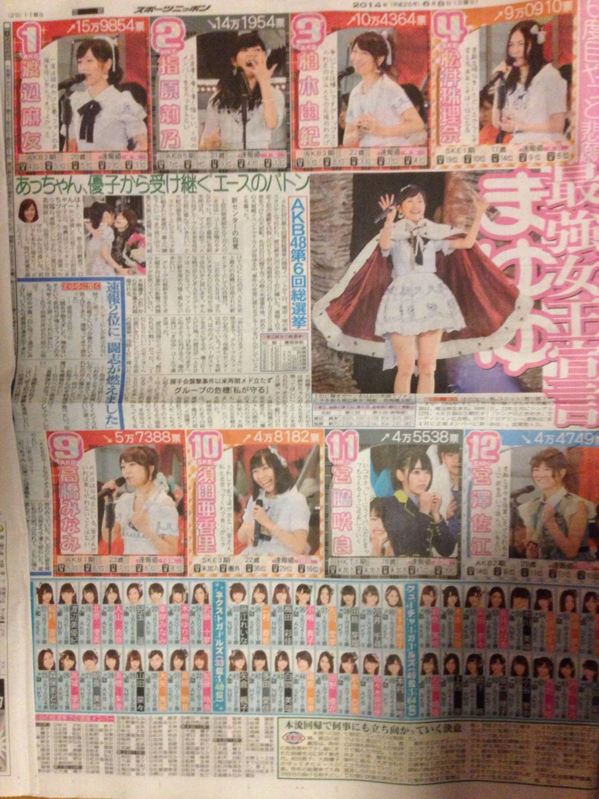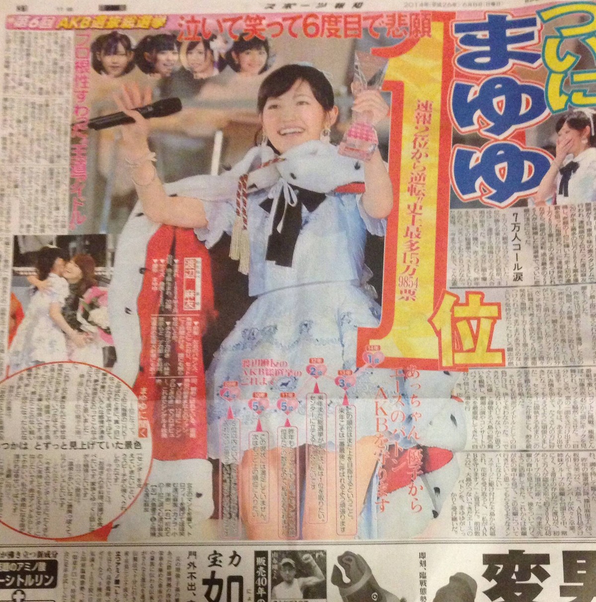 【悲報】まゆゆ もってない!? 前代未聞 全スポーツ紙1面無し!! 2014年06月08日 カテゴリ:渡辺麻友指原莉乃 2013 指原1位 2014 渡辺1位 さしこは全部一面 まゆゆは・・・ 【【悲報】まゆゆ もってない!? 前代未聞 全スポーツ紙1面無し!!】の続きを読む タグ :#AKB48選抜総選挙